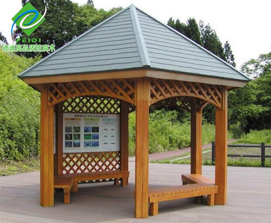 景觀涼亭在園林中的作用是非常重要的,無論是什么樣的景觀,也不管規(guī)模是大是小如果用景觀涼亭去點綴一下,那么整體的效果就會上升不止一個檔次了。景觀涼亭的風(fēng)格可根據(jù)環(huán)境與要求設(shè)計,風(fēng)格樣式也是多種多樣,一般常見的為中式古典、中式現(xiàn)代、日式、泰式、歐式、地中海式等。不管什么樣式和風(fēng)格,景觀涼亭所使用的材料一般都是木材,而防腐木材是最長用的,因為防腐木材在戶外使用可以保證不爛不腐,延長了防腐木涼亭的使用壽命。