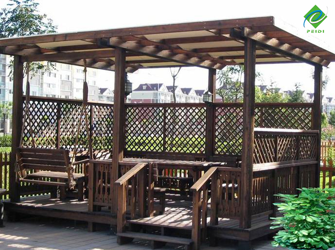 防腐木廊架為庭院景觀之一,結(jié)構(gòu)多樣,休閑美觀。廊架的應(yīng)用范圍也很廣泛,常見的有園林花架、葡萄架、藤蔓植物架。在生活設(shè)施方面南方松廊架還可以作為圍欄、車庫出口、頂棚等。廊架可應(yīng)用于各種類型的園林綠地中,常設(shè)置在風(fēng)景優(yōu)美的地方供休息和點(diǎn)景,也可以和亭、廊、水榭等結(jié)合,組成外形美觀的園林建筑群;在居住區(qū)綠地、兒童游戲場(chǎng)中廊架可供休息、遮蔭、納涼;用廊架代替廊子,可以聯(lián)系空間;用格子垣攀緣藤本植物,可分隔景物;園林中的茶室、冷飲部、餐廳等,也可以用廊架作涼棚,設(shè)置坐席;也可用廊架作園林的大門。