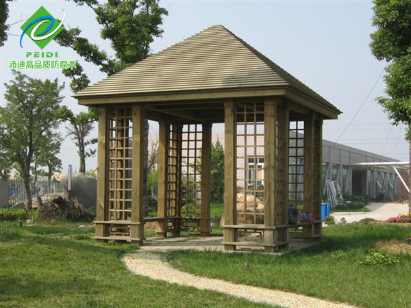 防腐木涼亭相比于其他戶外硬質(zhì)景觀更加靈活多樣,它布置合理,全園俱活,對(duì)點(diǎn)景起到烘云托月、錦上添花的作用。既增加了園林景觀的情趣,又豐富了園林景觀的景觀。不得體則感到凌亂,合理設(shè)計(jì)與安排,一般都能構(gòu)成園林景觀空間中美好的景觀藝術(shù)效果?,F(xiàn)在國內(nèi)常見的防腐木主要有兩種材質(zhì):俄羅斯樟子松、北歐赤松和美國南方松。俄羅斯樟子松材質(zhì)防腐木主要是進(jìn)口原木在國內(nèi)做的防腐木處理,多為CCA藥劑處理。北歐赤松材質(zhì)防腐木是由國外做好防腐處理,進(jìn)口到國內(nèi)直接銷售的防腐木材,現(xiàn)在均為ACQ藥劑處理,且通常被成為“芬蘭木”。