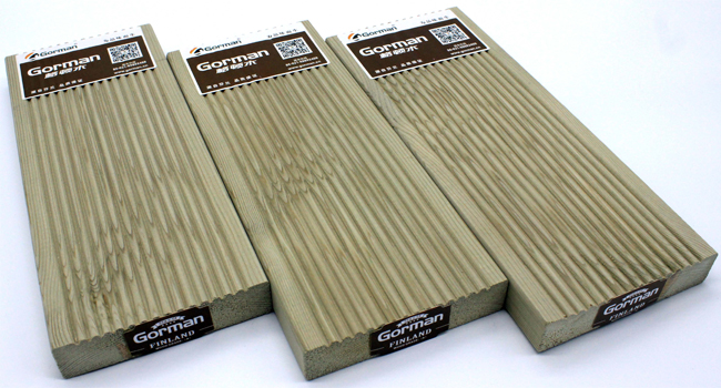 芬蘭木拉槽地板,一般市場(chǎng)上所指的芬蘭木就是由歐洲赤松經(jīng)過防腐處理生產(chǎn)出來的高端防腐木。歐洲赤松樹質(zhì)細(xì)、紋理直,經(jīng)過防腐處理后,能有效地防止白蟻、微生物的侵蛀,能有效抑制木材中的水份,減少木材的開裂程度。是一種良好的戶外地板用材。
