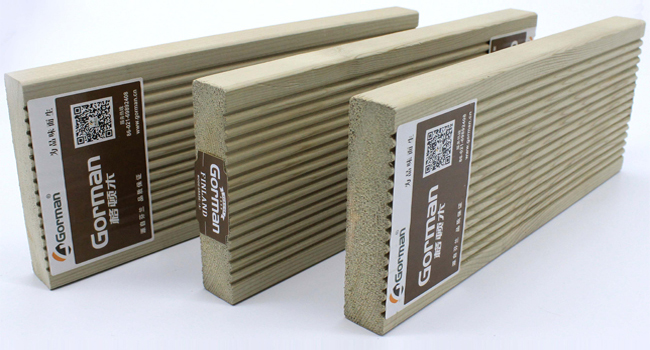 純進(jìn)口的芬蘭木是進(jìn)過防腐處理的北歐赤松,北歐赤松在經(jīng)過高壓罐裝防腐處理,剛做好防腐的木材呈現(xiàn)亮黃色,經(jīng)過自然風(fēng)干后的芬蘭木呈現(xiàn)原木色略微帶有綠色,顏色越均勻說明防腐效果越好。芬蘭木適合建造戶外硬質(zhì)景觀如:防腐木涼亭、廊架、圍欄、戶外家具等,同時(shí)芬蘭木也是戶外地板的良好材料,很多小區(qū)與公園都在使用芬蘭防腐木做戶外木地板的原料。芬蘭木在加工成為板材之后,經(jīng)過機(jī)械鋸材成長度一致的板材,再將木材表面開出防滑槽,這樣做的好處是提高防腐木地板的防滑性,同時(shí)使木材不容易開裂變形。