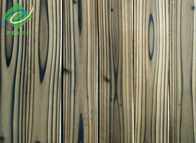 表面炭化木首選花旗松,花旗松炭化木紋理美觀,經(jīng)過炭化處理以后,顏色更加分明,更具有觀賞性。表面炭化木是用氧焊槍燒烤,使木材表面具有一層很薄的炭化層,對木材性能的改變可以類比木材的油漆,但可以突顯表面凹凸的木紋,產(chǎn)生立體效果。應(yīng)用方面集中在工藝品、裝修材料和水族罐制品。也稱為工藝炭化木、炭燒木。