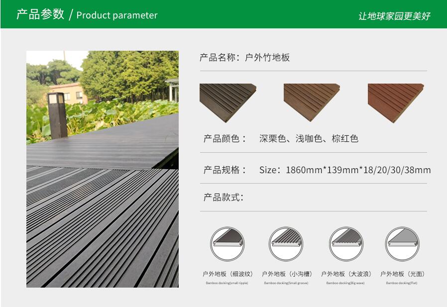 戶外防腐竹木地板具有綠色環(huán)保、抗白蟻、強(qiáng)耐腐性、高強(qiáng)防霉、高硬度、高耐久性等特點(diǎn),已廣泛應(yīng)用于國(guó)內(nèi)外園林景觀、游艇碼頭、家裝工程、房產(chǎn)項(xiàng)目。此外還可應(yīng)用于高溫高濕等苛刻的環(huán)境中,地面及墻面均可應(yīng)用,使用壽命長(zhǎng)達(dá)25年以上。戶外防腐竹木地板的紋理有大波浪,小溝槽,細(xì)波紋,光面等多種選擇,歡迎您來電垂詢;13917883368